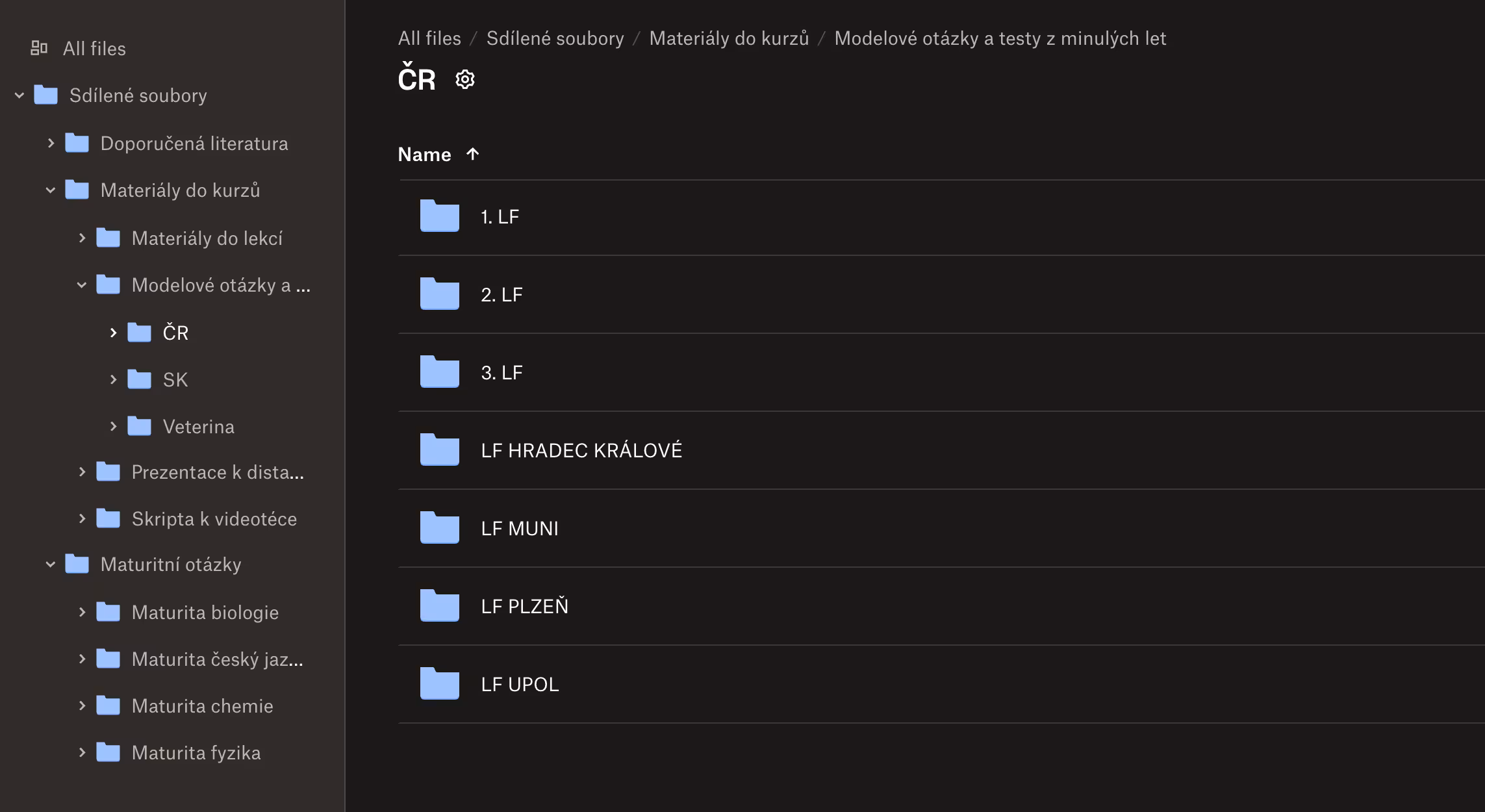 Součástí online kurzu je úložiště se všemi studijními materiály, které potřebuješ k přípravě. Najdeš v něm materiály z fyziky, chemie a biologie, modelové otázky s řešenými postupy i tipy k testům a ústním pohovorům.